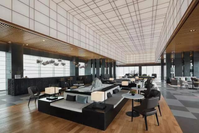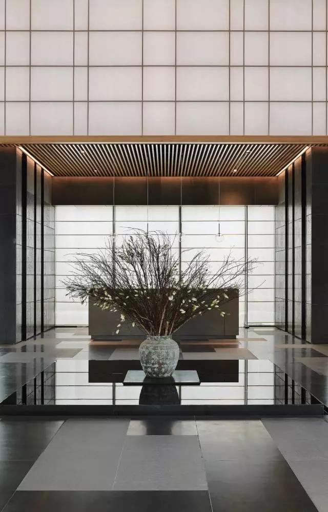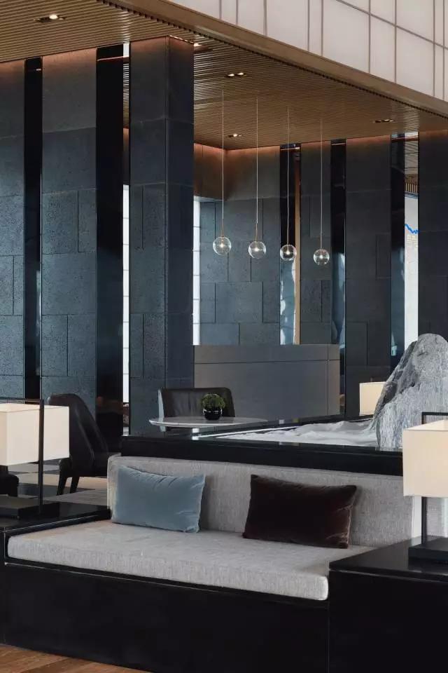 借由東方園林式的假山,打造出“未若柳絮因風起”的雪景,美如水墨畫、細膩至極。這與圍繞式洽談方式布置相結合,巧妙處理好空間形態(tài)和陳設之間的關系。大尺度挑高設計,加上頂部有序交互的線條,讓空間極具延展性,通透敞亮的照明效果搭配藝術性燈光點綴,使整體氛圍更顯大氣與品位。該空間通過主體、功能位置、通透的序列式的立面關系,自然分割空間視線,同時又實現(xiàn)了將光線引入到室內(nèi)的最大化。
