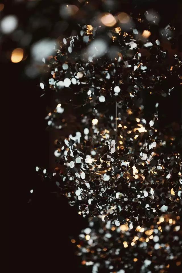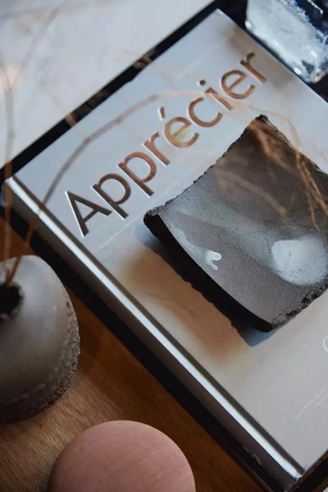 水吧臺以毛鑿面的形式呈現(xiàn),質(zhì)樸卻別具一格。而光線透射在吧臺頂面,又與書架、吊燈以及頂部的木百葉形成互動,勾勒出繽紛的空間輪廓。粗獷肌理感的石材,又與花瓣式的吊燈形成材質(zhì)上的鮮明對比,晶瑩璀璨。